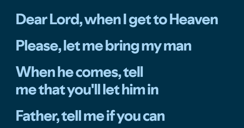 I understand now why Lana prayed, ‘Dear Lord, when I get to heaven, please let me bring my man…