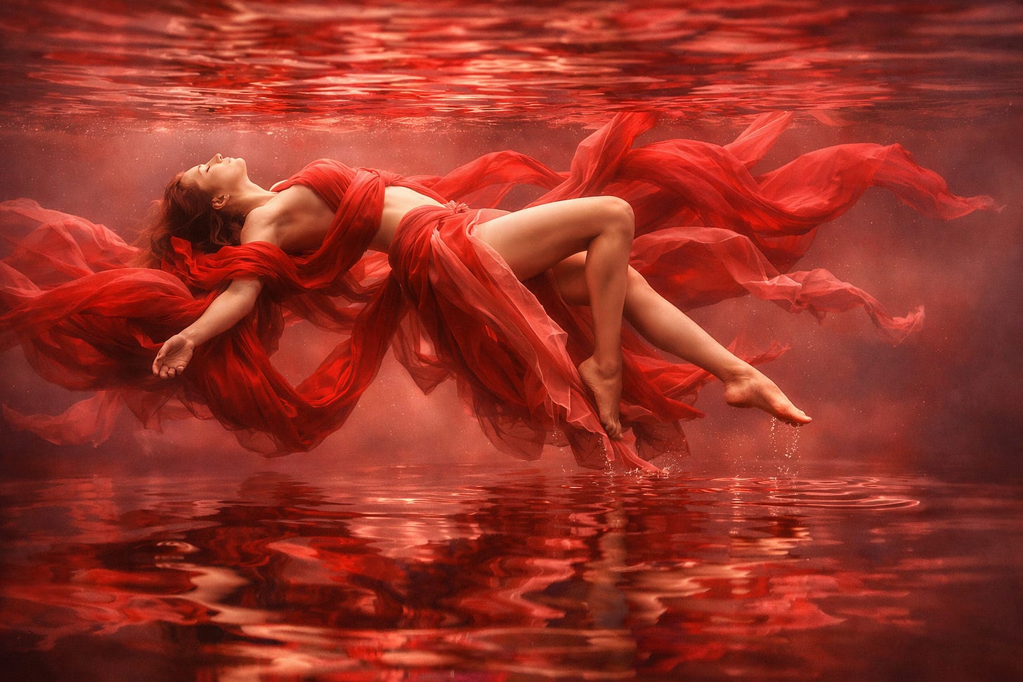 Red whipped, scarlet ribbons flowing from my side, wrapping round my thighs, pooling at the floor